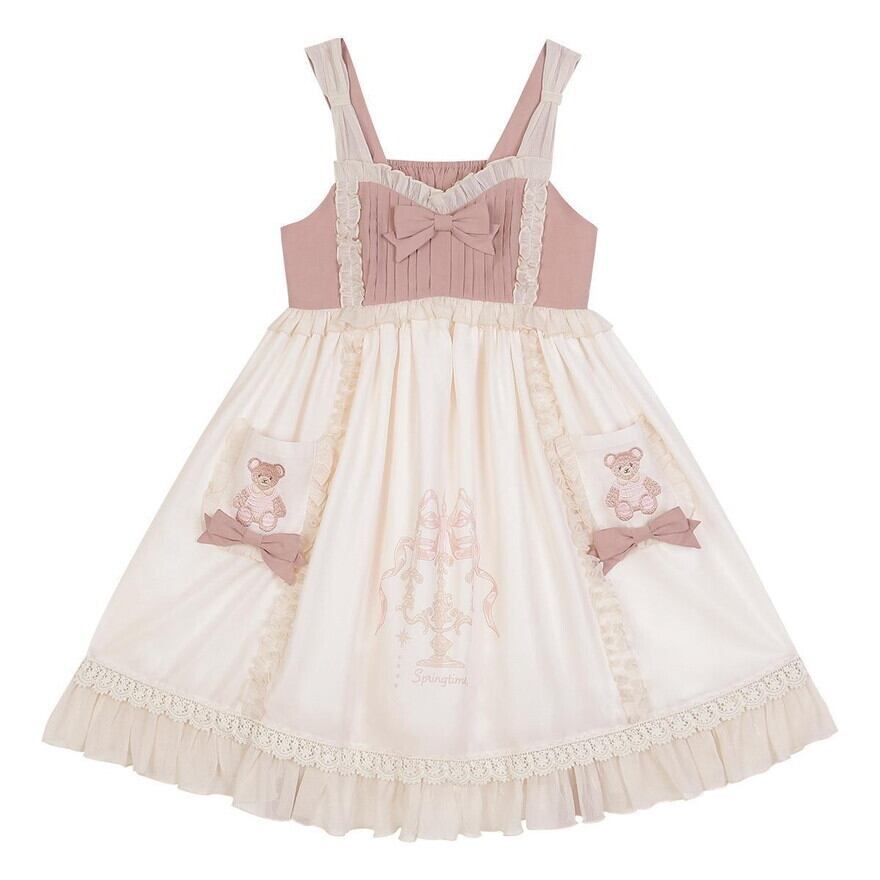 クマちゃん刺繍がかわいいメルヘンチックなゆめかわジャンパースカートです