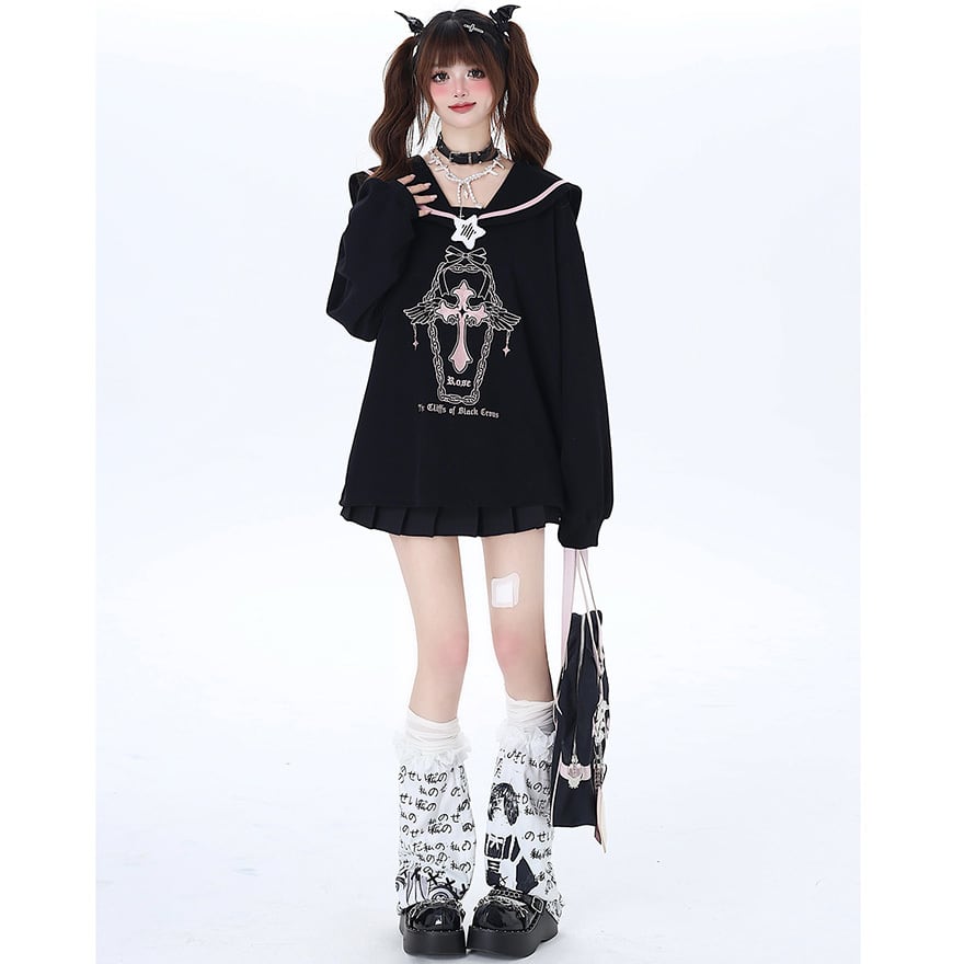 サブカル 服 地雷系 通販 CRAZYGIRL 長袖スウェット セーラー襟 プルオーバー スクールスタイル 闇かわいい バンギャ