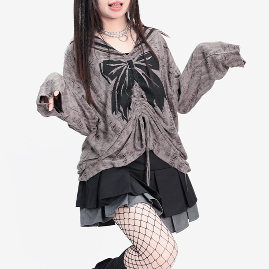 サブカル 服 地雷系 通販 Catwish セーラー服風ニット セーラー襟 トップス 長袖 ダメージ加工 闇かわいい バンギャ