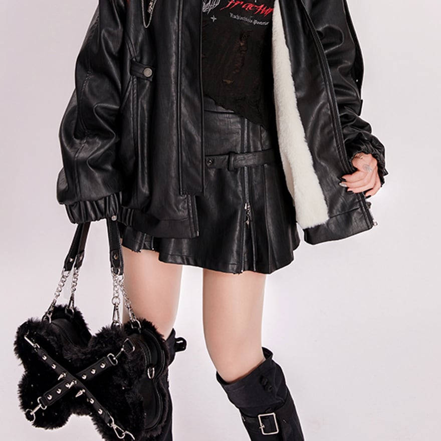 サブカル 服 地雷系 通販 レザースカート ミニスカート プリーツ ジッパー 闇かわいい バンギャ