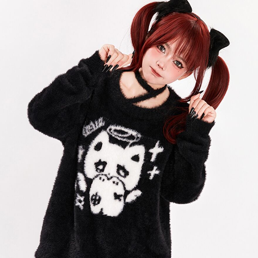 サブカル 服 地雷系 通販 長袖セーター ニット 子猫 ホルターネック 闇かわいい バンギャ