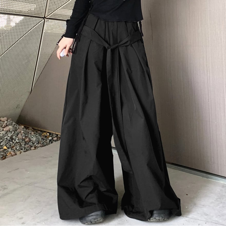 サブカル 服 地雷系 通販 ユニセックス ルーズワイドパンツ ドレープ モップロングパンツ ハイウエスト 闇かわいい バンギャ