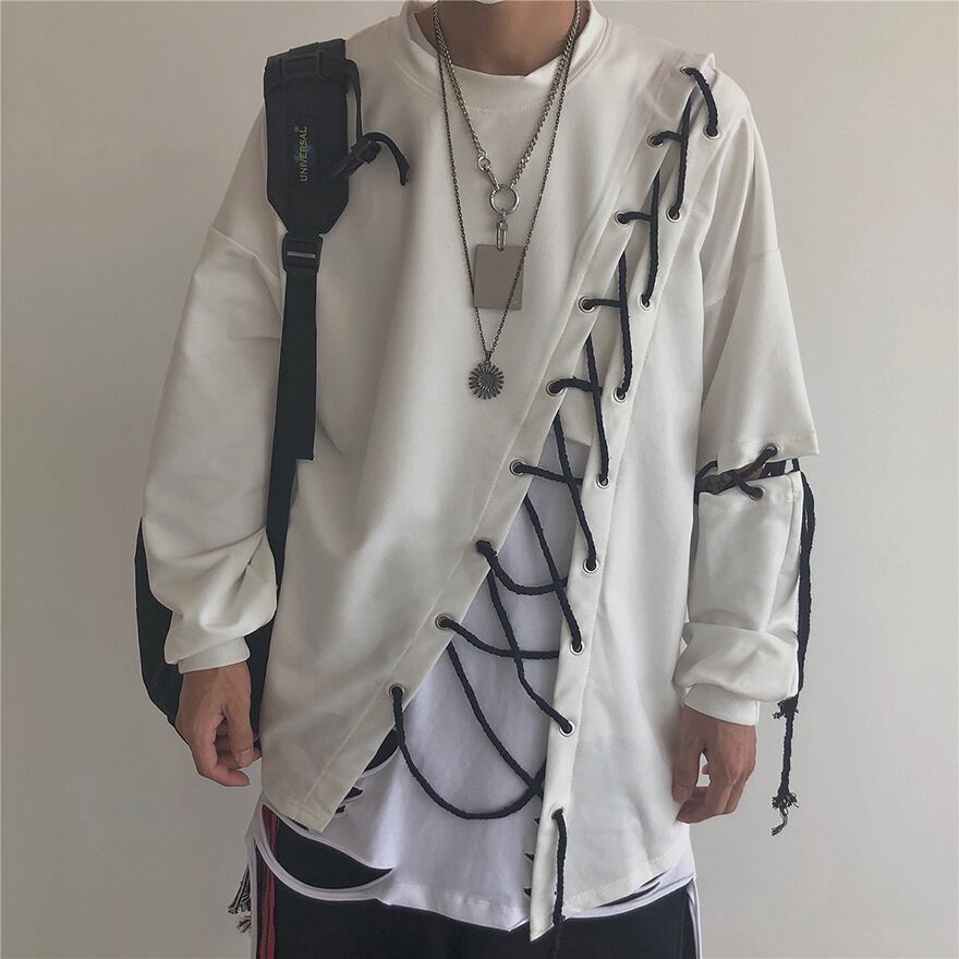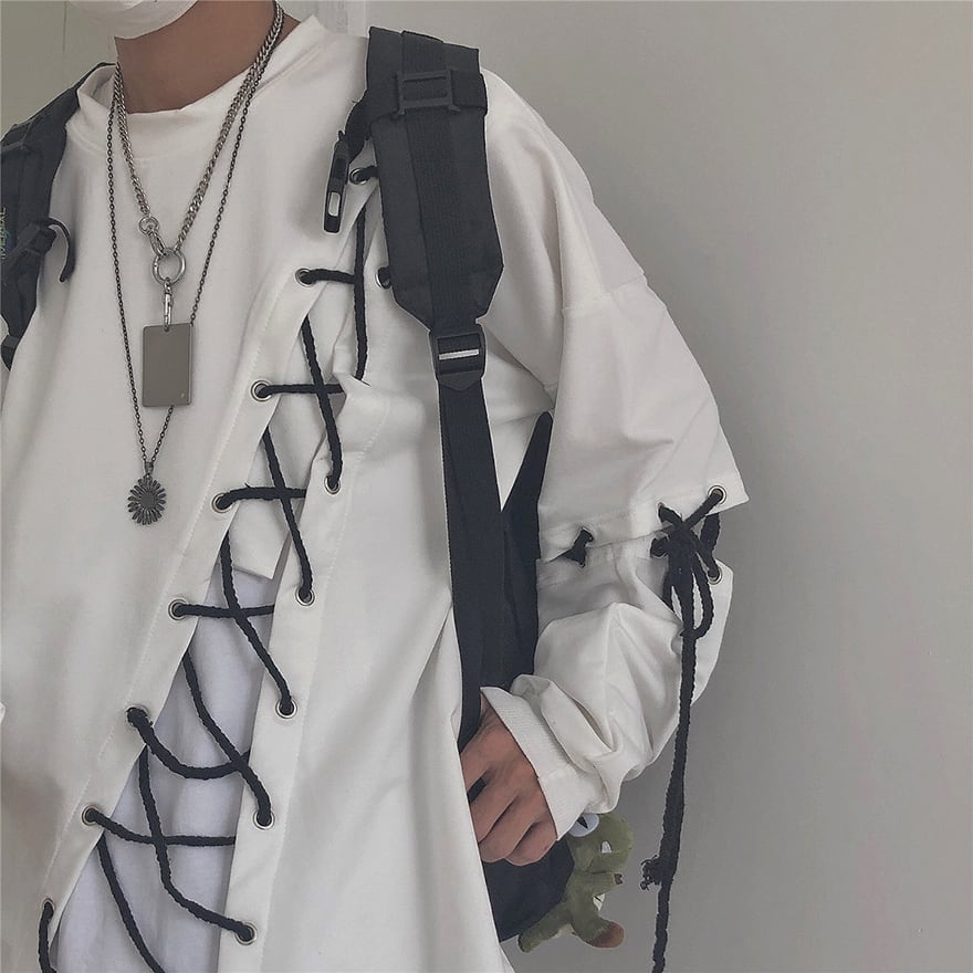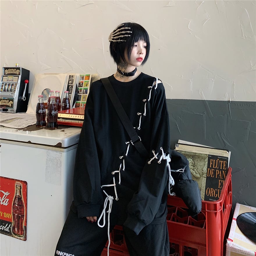 サブカル 服 地雷系 通販 長袖Tシャツ オーバーサイズ ユニセックス 編み込み ロープ 闇かわいい バンギャ