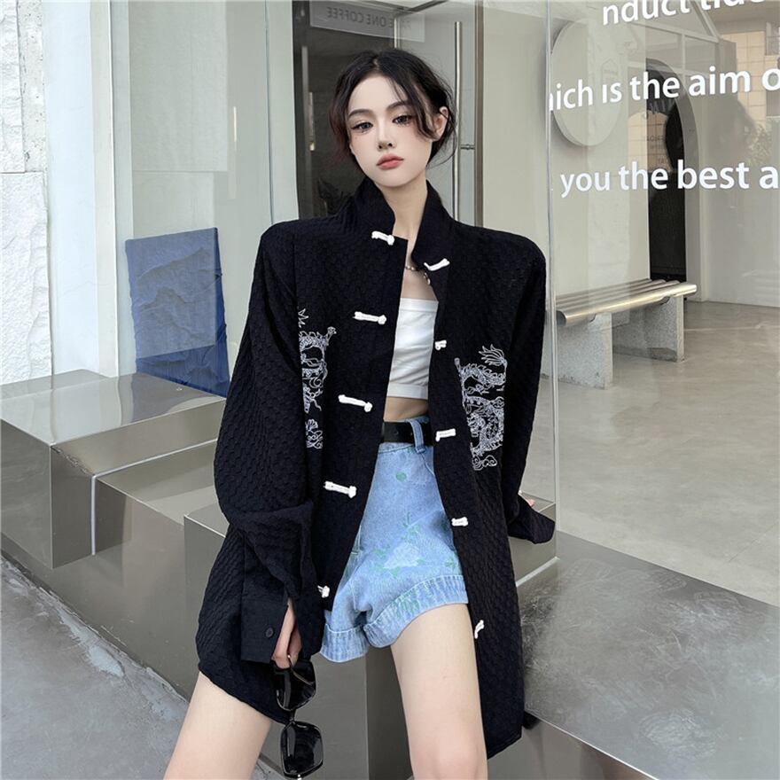 サブカル 服 地雷系 通販 中国刺繍 チャイナ風ジャケット バックル 長袖シャツ 闇かわいい バンギャ