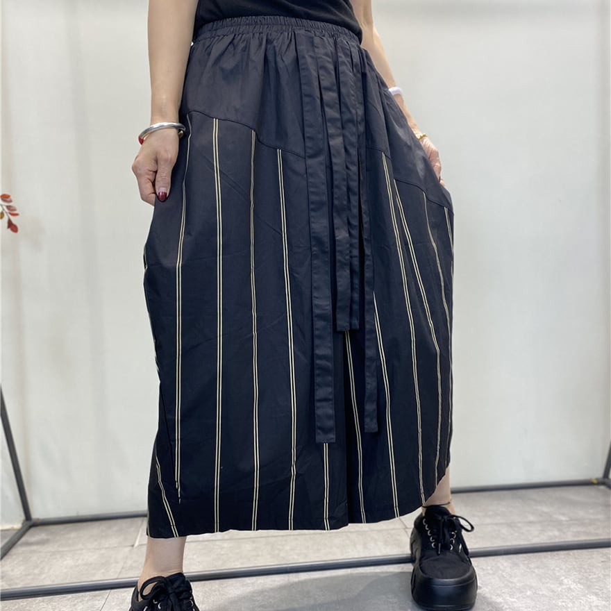 サブカル 服 地雷系 通販 ストライプ柄 ワイドパンツ クロップド丈 オーバーサイズキュロット 闇かわいい バンギャ