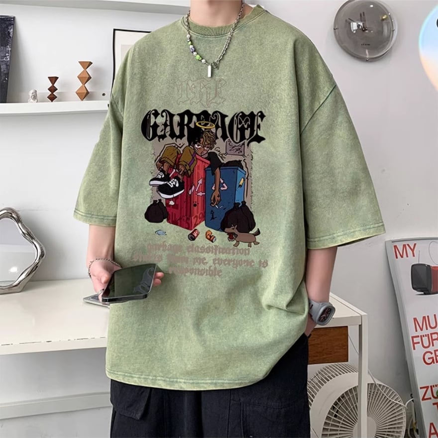 サブカル 服 地雷系 通販 メンズ 半袖 Tシャツ プリント柄 ウォッシュド オールド ヴィンテージ風 インディーズ 漫画 アニメ