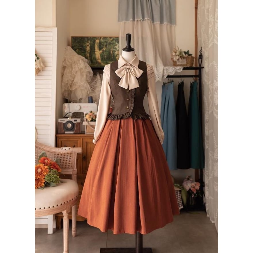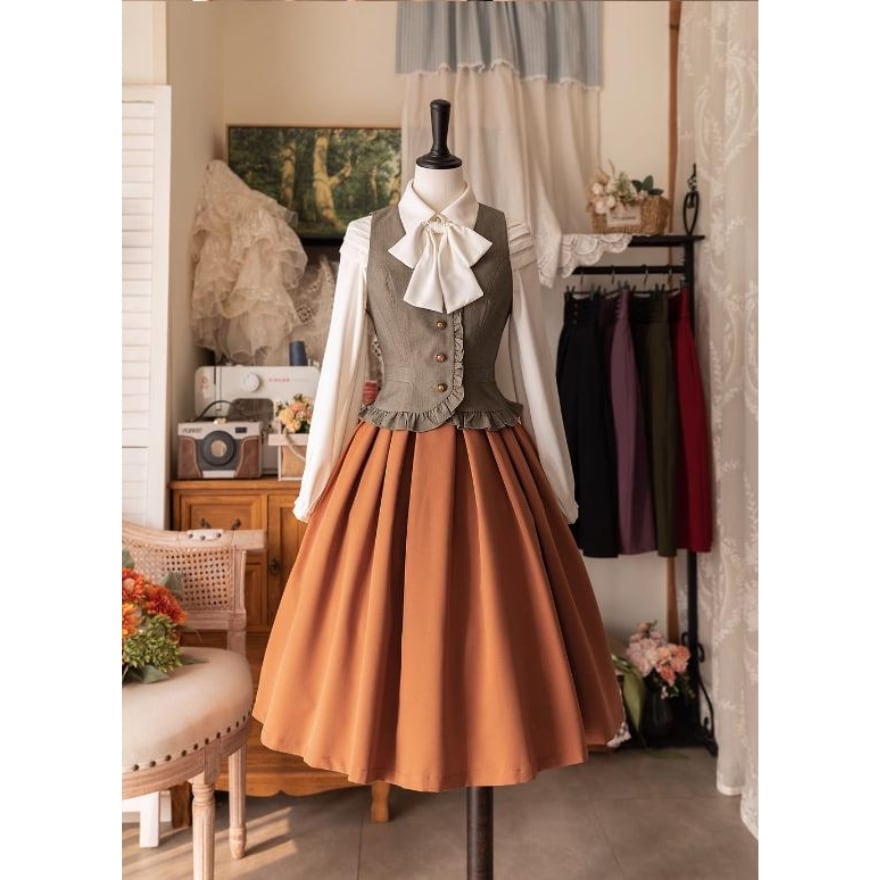 写真のブラウスとコーデアップで上品なクラロリスタイルが叶うベストです