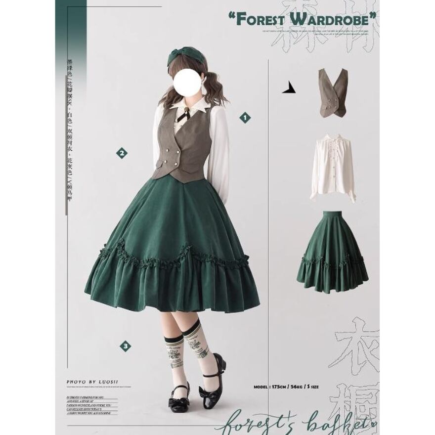 写真のブラウスとコーデアップで上品なクラロリスタイルが叶うベストです