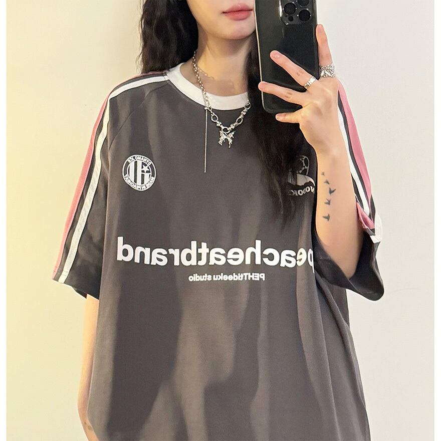 サブカル 服 地雷系 通販 Tシャツ アメリカンレトロ アルファベットプリント ロゴ スポーツ 半袖 闇かわいい