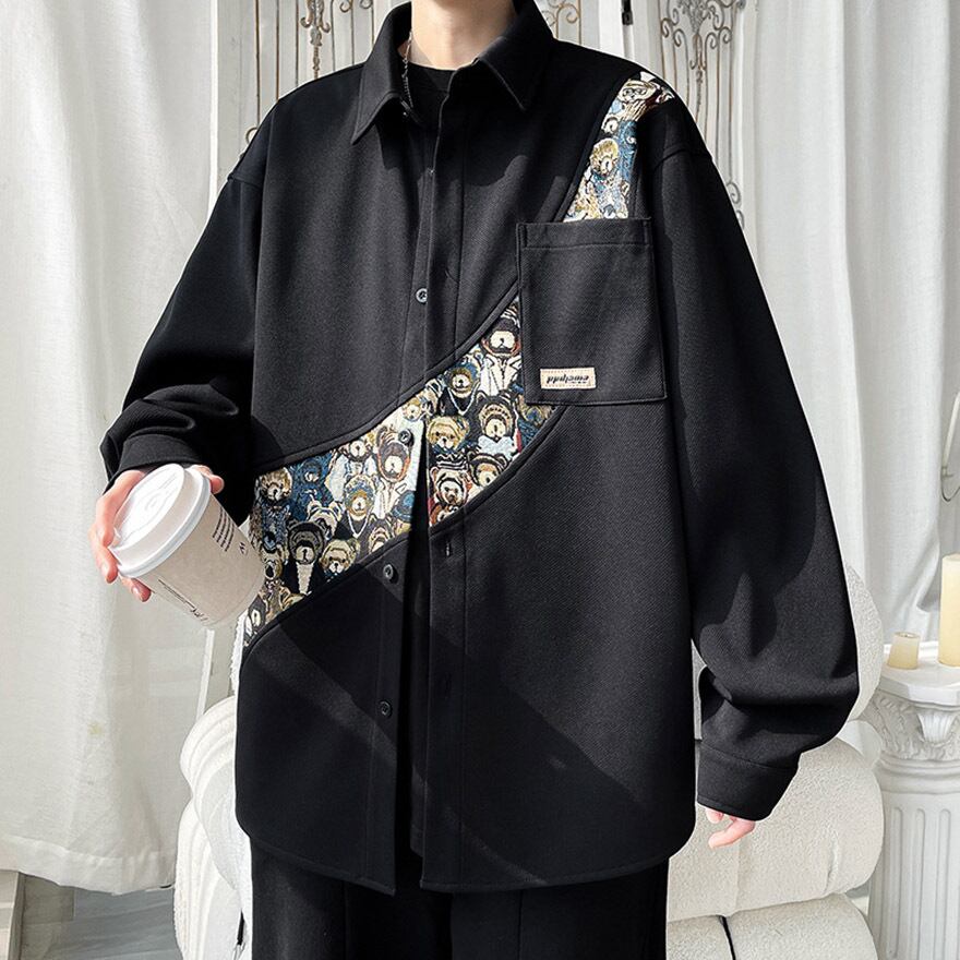 いっぱいの熊が刺繍された長袖のシャツジャケットです。