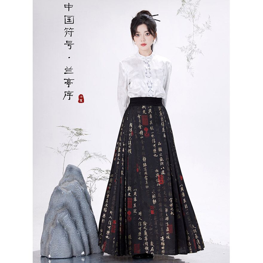 サブカル 服 地雷系 通販 ロングスカート 巻きスカート 漢字刺繍 プリーツ 漢服 闇かわいい