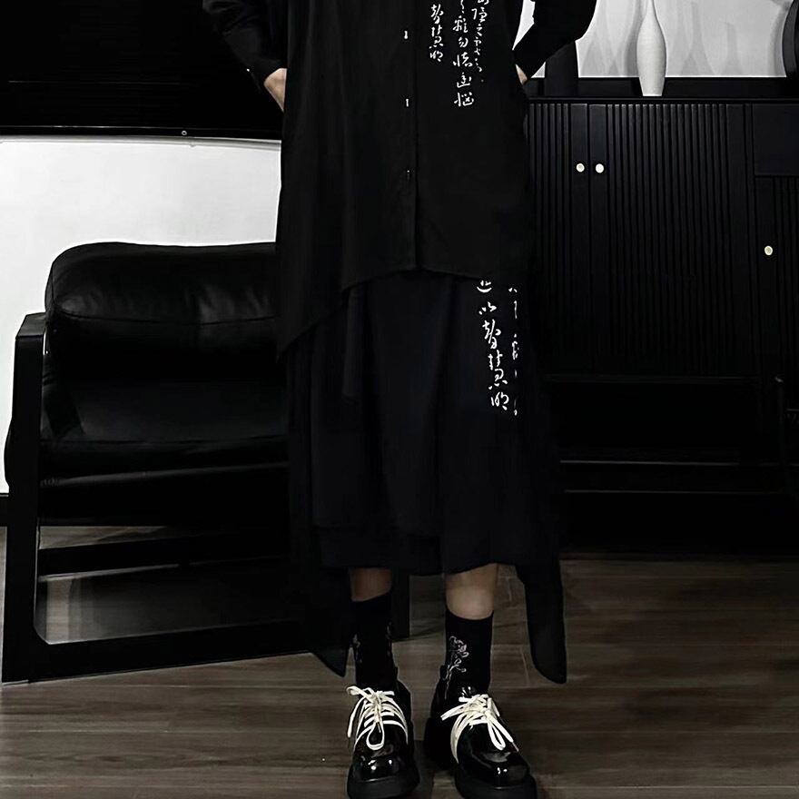 サブカル 服 地雷系 通販 ロングスカート ヘムデザイン 書道プリント アシンメトリー 闇かわいい