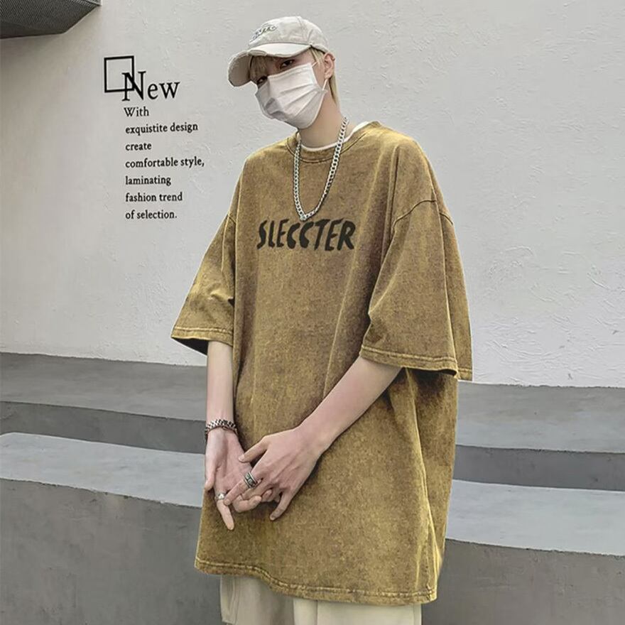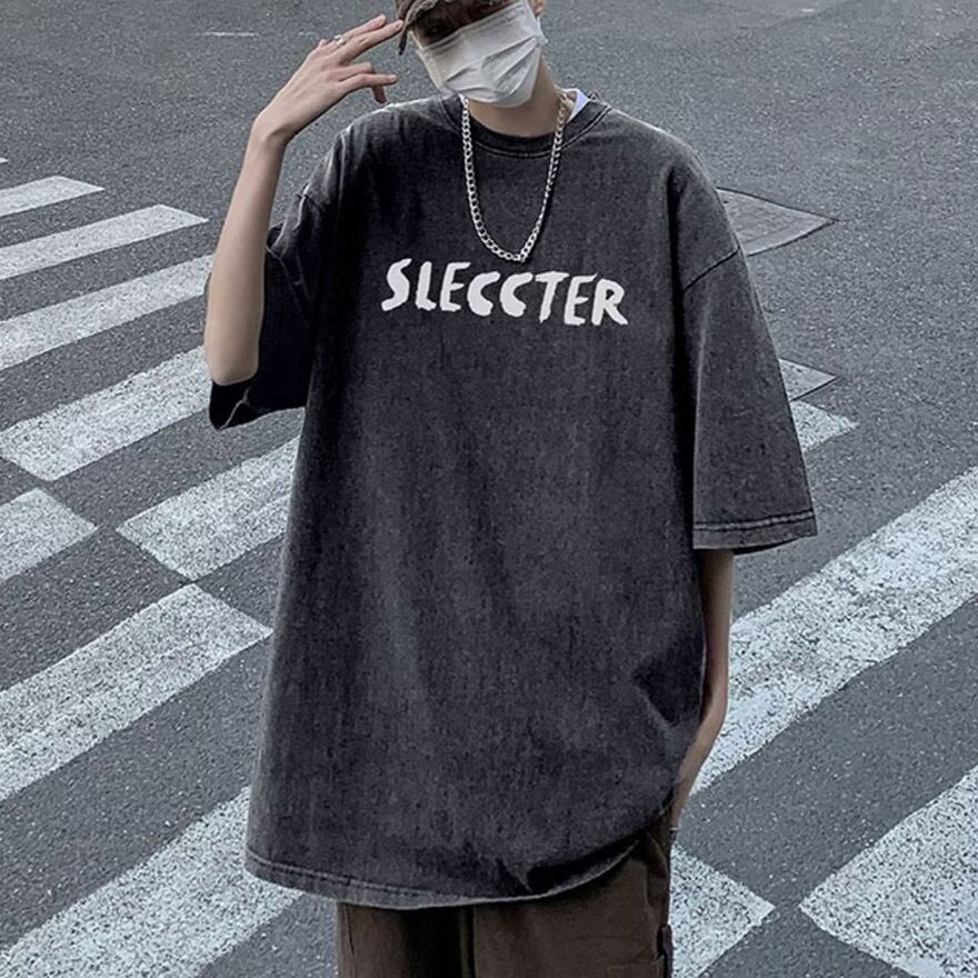 サブカル 服 地雷系 通販 半袖Tシャツ ルーズ ストリート ウォッシュド コットン オーバーサイズ 闇かわいい