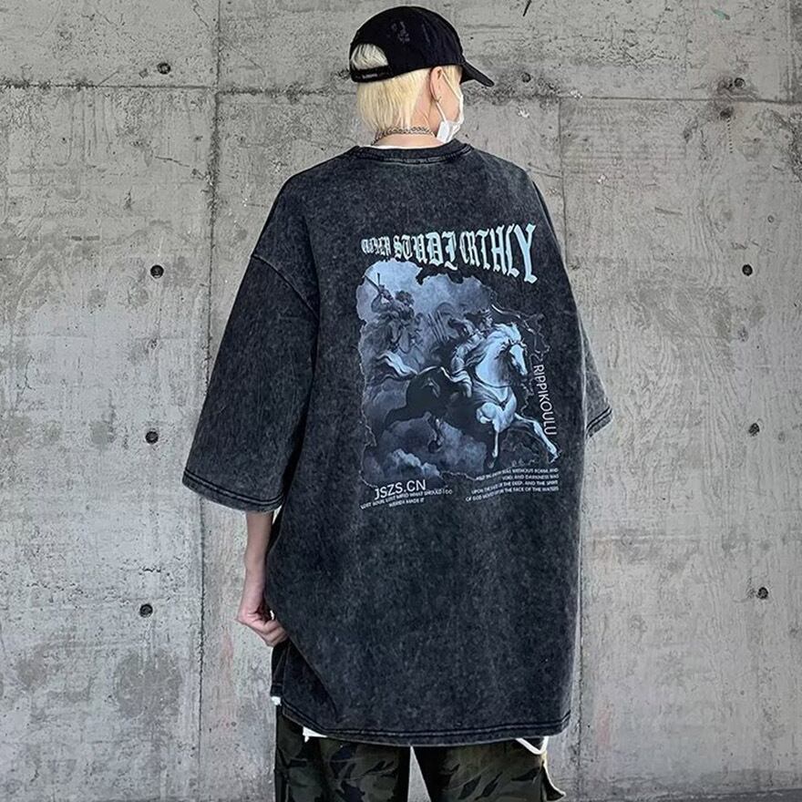 サブカル 服 地雷系 通販 半袖Tシャツ トップス ユーズド ウォッシュド オーバーサイズ 闇かわいい