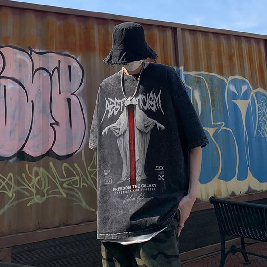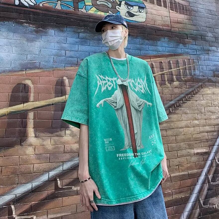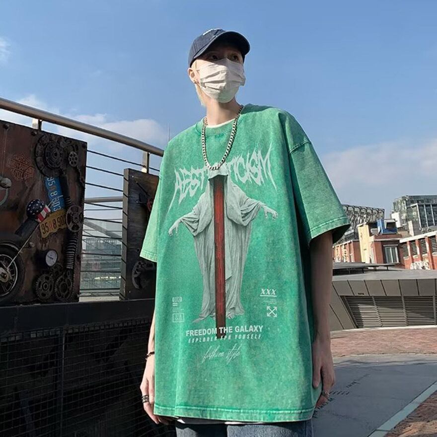 サブカル 服 地雷系 通販 半袖Tシャツ オーバーサイズ プリント ユーズド ウォッシュド レトロ 闇かわいい