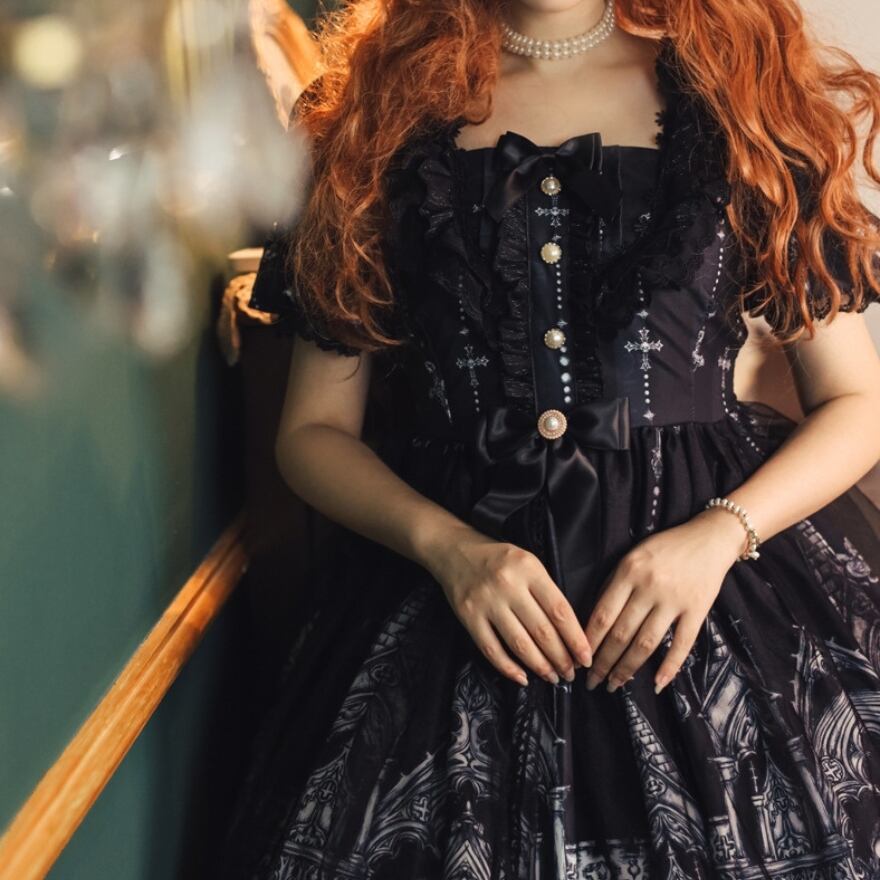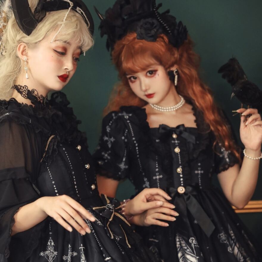 病みかわいいダークゴシックなブラックに上品なホワイトロリータの2カラーのワンピースです。