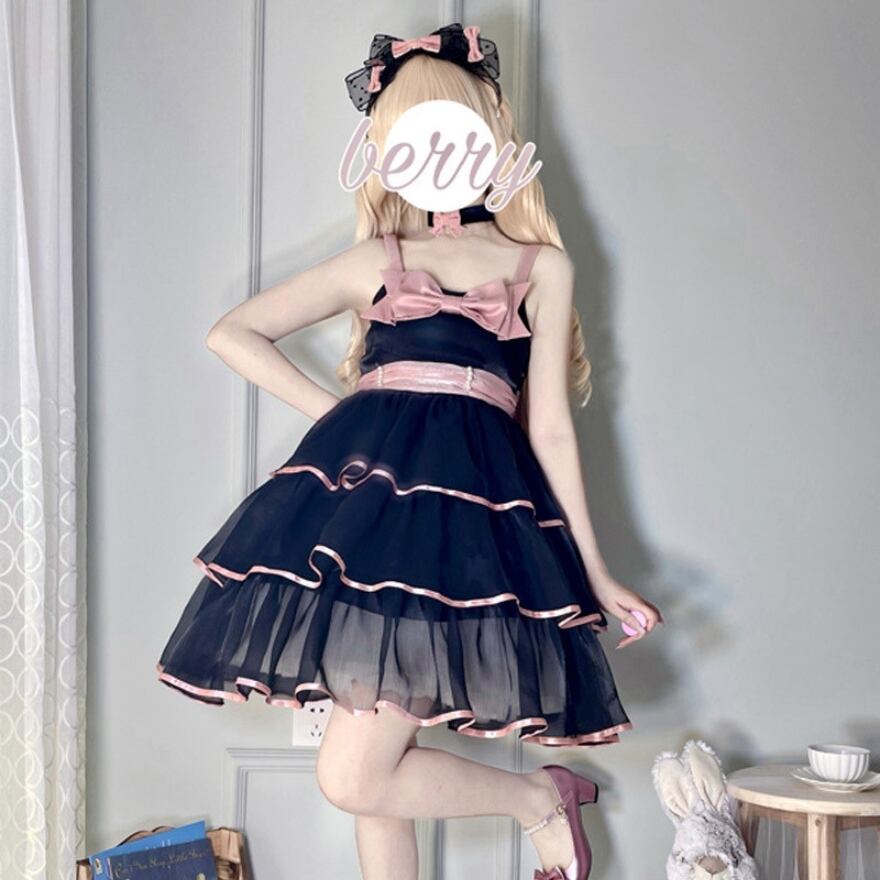 サブカル 服 地雷系 通販 ゆめかわ ジャンパースカート シフォン 3段切替 ろりぃた服