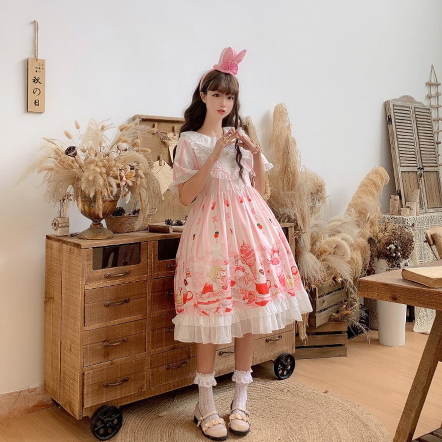 サブカル 服 地雷系 通販 ゆめかわ 半袖 ワンピース フリル 甘ロリ