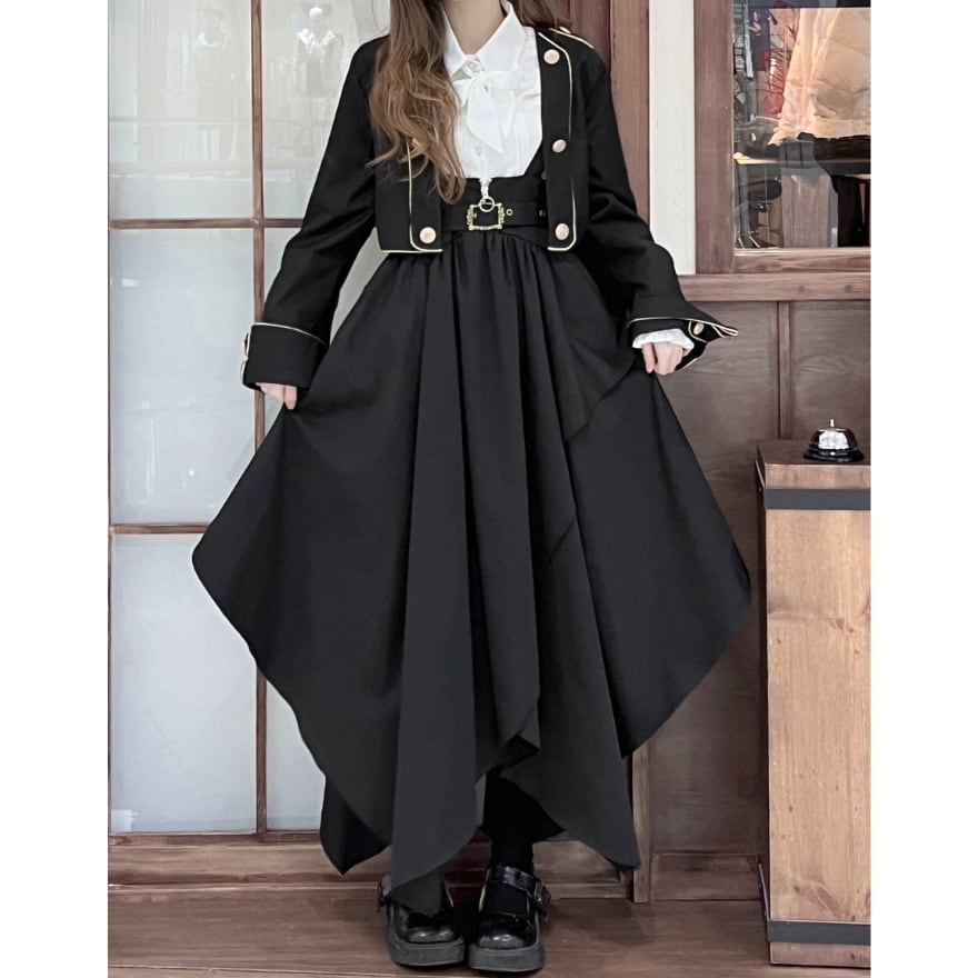 セット内訳はジャケット、ブラウス、ウエストベルト、アシンメトリースカートになります