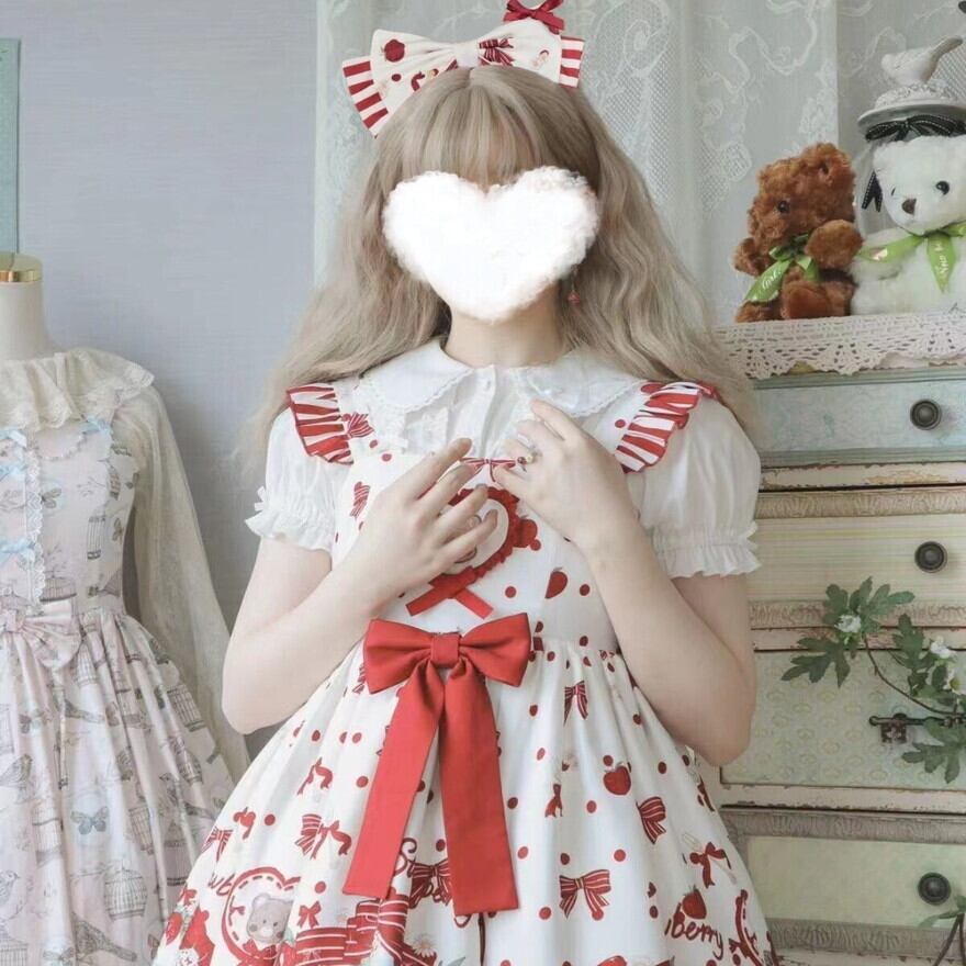 サブカル 服 地雷系 通販 ゆめかわ服 半袖ワンピース メイド服 エプロン くまちゃん ストロベリー 甘ロリ ロマンティック