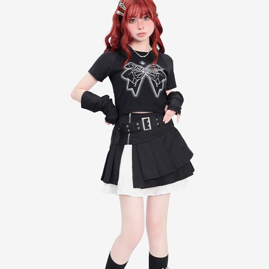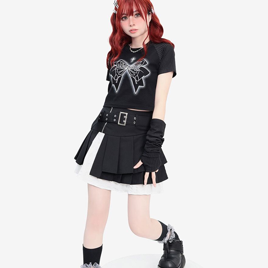 サブカル 服 地雷系 通販 Catwish 継袖 Tシャツ 半袖トップス リボン アームカバー付き 闇かわいい 系