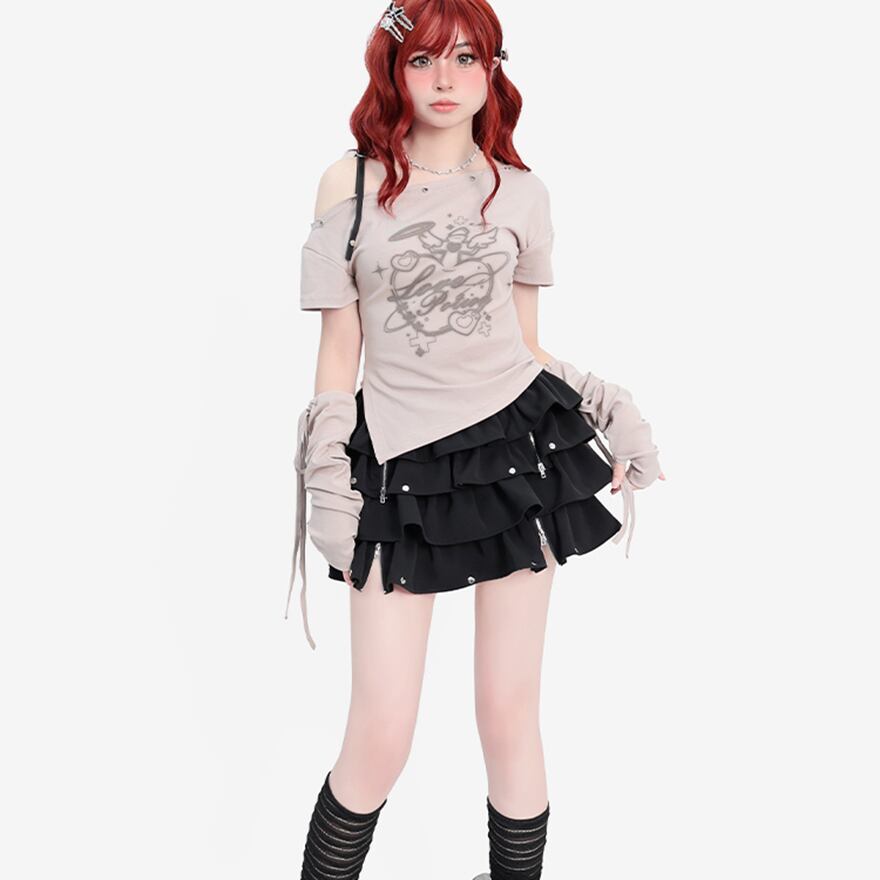 サブカル 服 地雷系 通販 Catwish ミニスカート フリル ボリューム ジッパー 闇かわいい 系