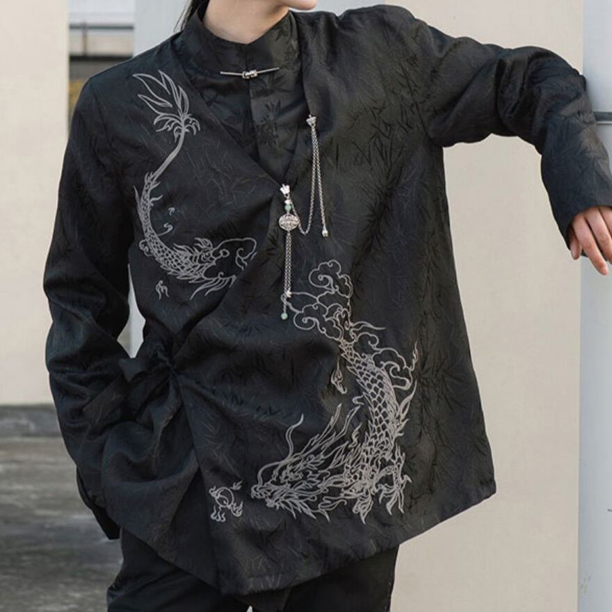 サブカル 服 地雷系 通販 チャイナ風 羽織り 長袖トップス ジャケット 龍刺繍 ドラゴン 闇かわいい