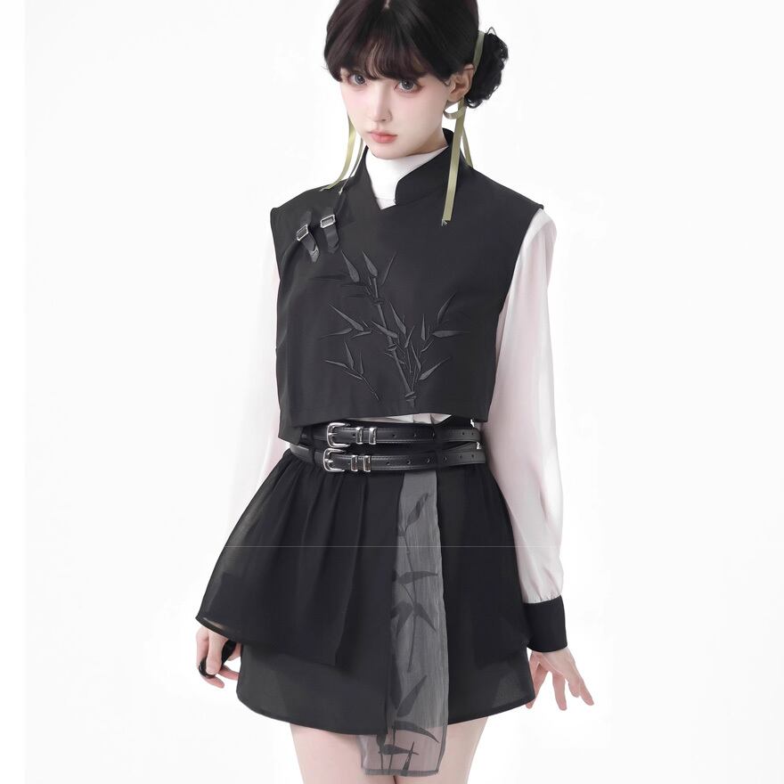 サブカル 服 地雷系 通販 pinksavior チャイナ風 ベスト 羽織り 重ね着 ショート丈 闇かわいい