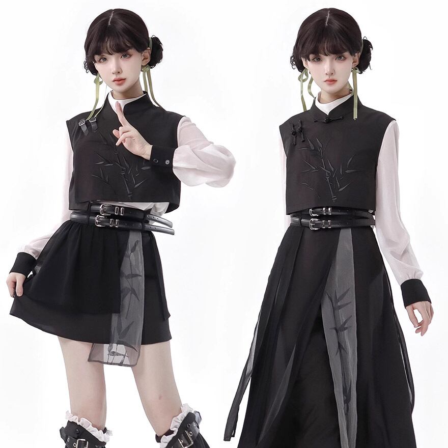 サブカル 服 地雷系 通販 pinksavior チャイナ風 スカート ロング丈 2本ベルト 闇かわいい