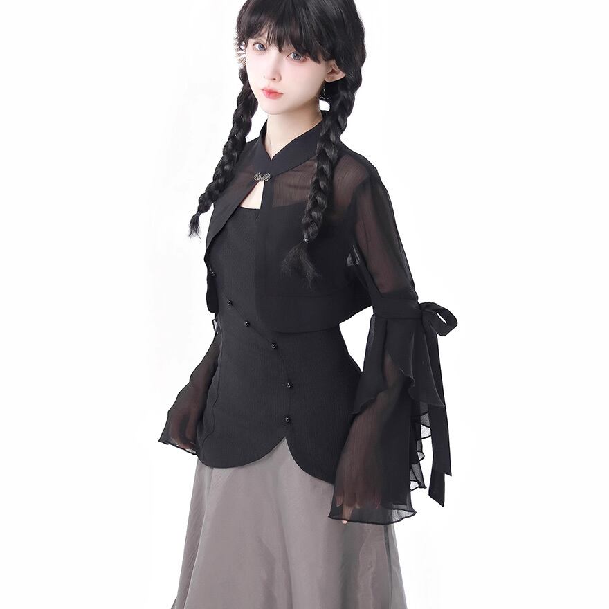 サブカル 服 地雷系 通販 pinksavior チャイナ風 シャツ ショート丈 闇かわいい
