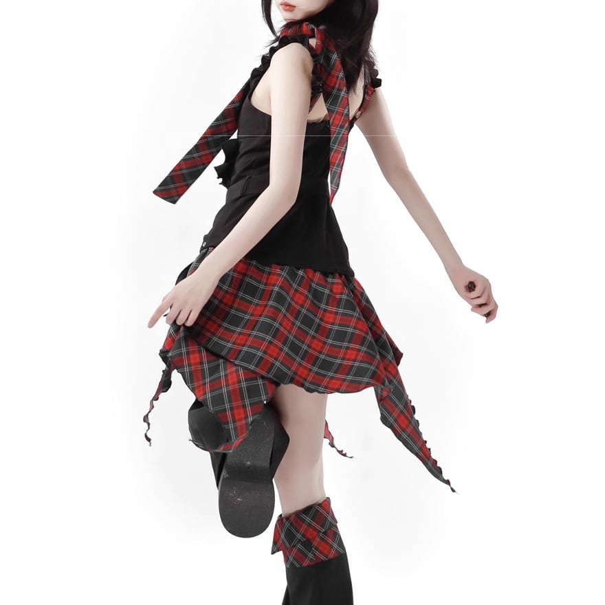 サブカル 服 地雷系 通販 pinksavior チェック柄 チューブトップ キャミワンピース ミニスカート キャミソール 闇かわいい