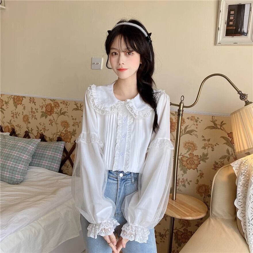 サブカル 服 地雷系 通販 使と悪魔 ファッション ゆめかわ ブラウス レース 丸襟 普段使い カジュアル 韓国ファッション