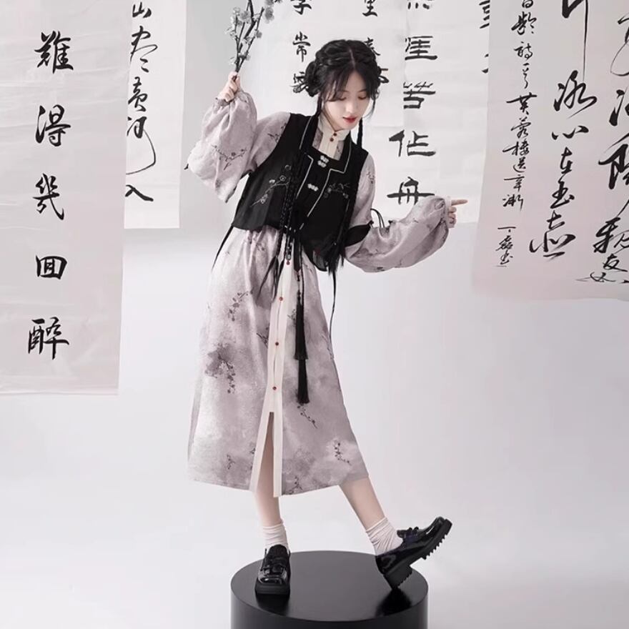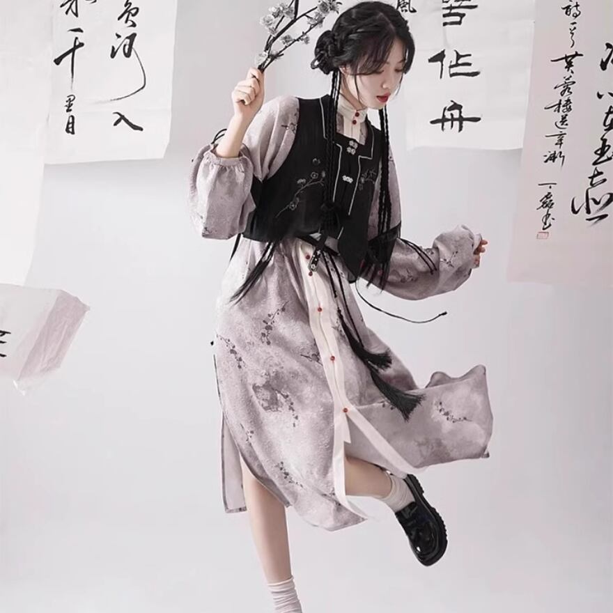 レトロクラシカルなチャイナ風のベスト、ワンピースのセットアップです