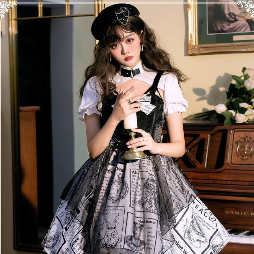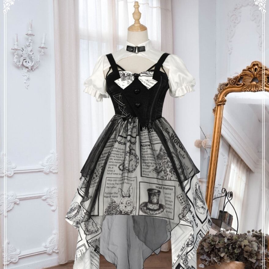 サブカル 服 地雷系 通販 ジャンパースカート リボン アシンメトリー Alice ロマンティック 浪漫 ゆめかわ 闇かわいい