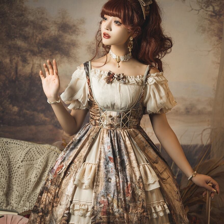 油絵から飛び出したような美しさが魅力のジャンパースカートです。