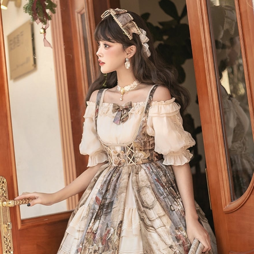 油絵に溶け込むような美しさが魅力のジャンパースカートのオプションの半袖ブラウスです。