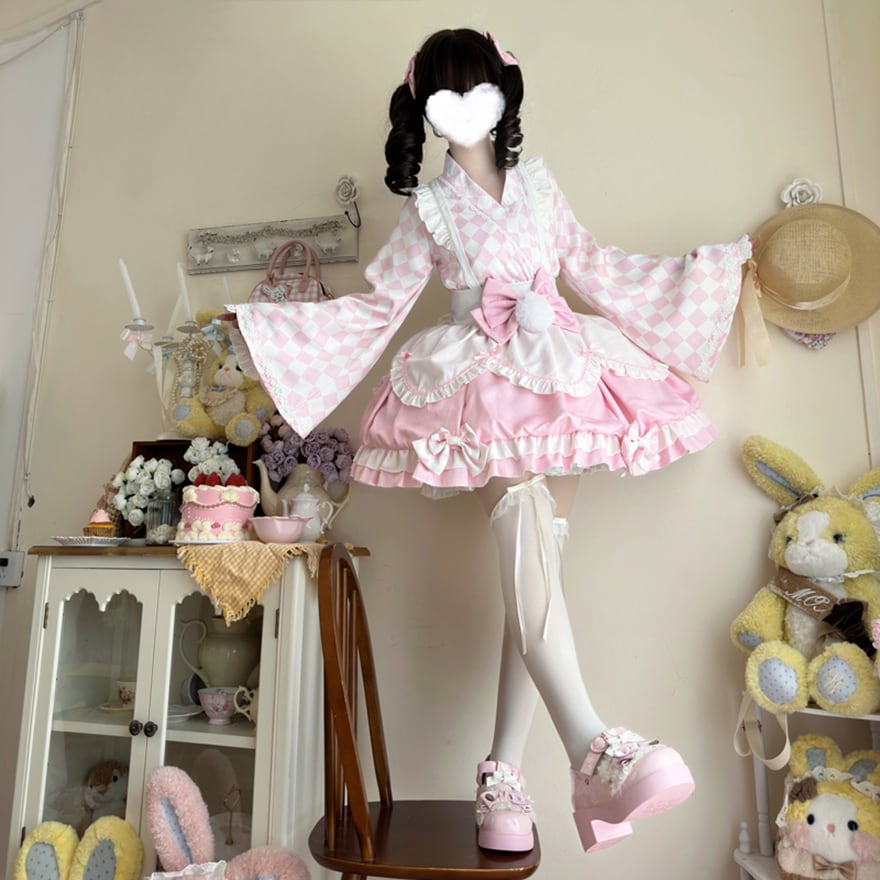 サブカル 服 地雷系 通販 和装 メイド服 和風メイド ミニスカート フリル リボン ふわふわ ファー ベビードール ロリィタ服サブカルファッション
