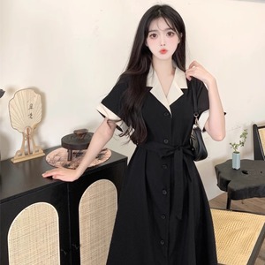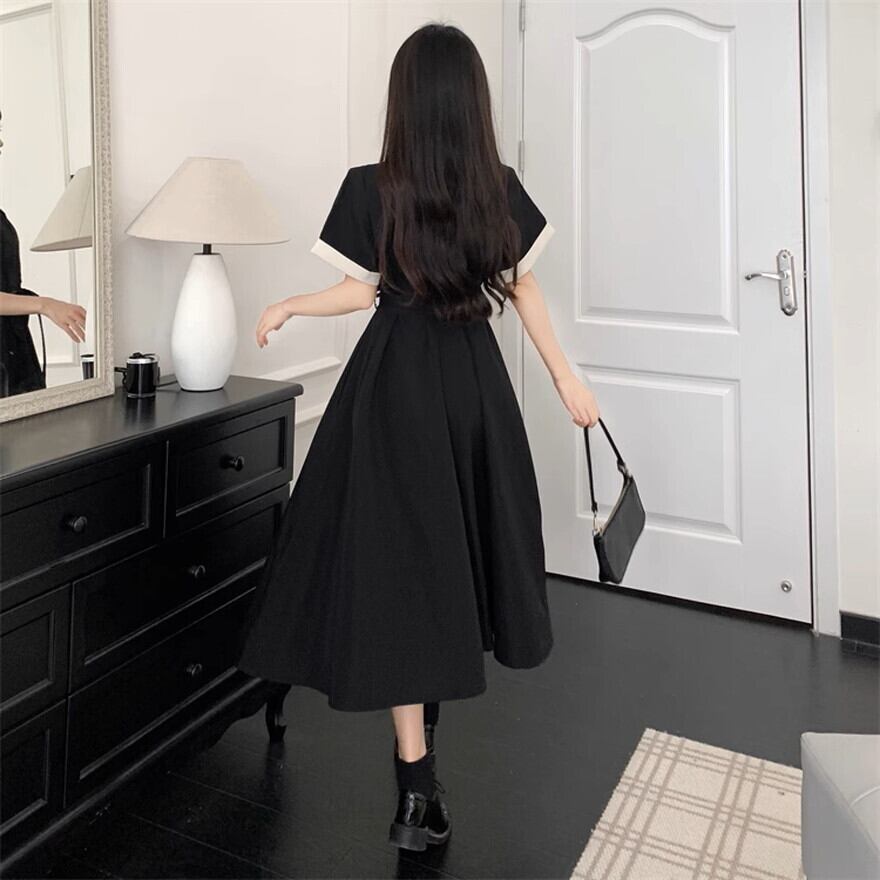 シックなバイカラーのレトロなゴシック風半袖ワンピースです。