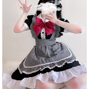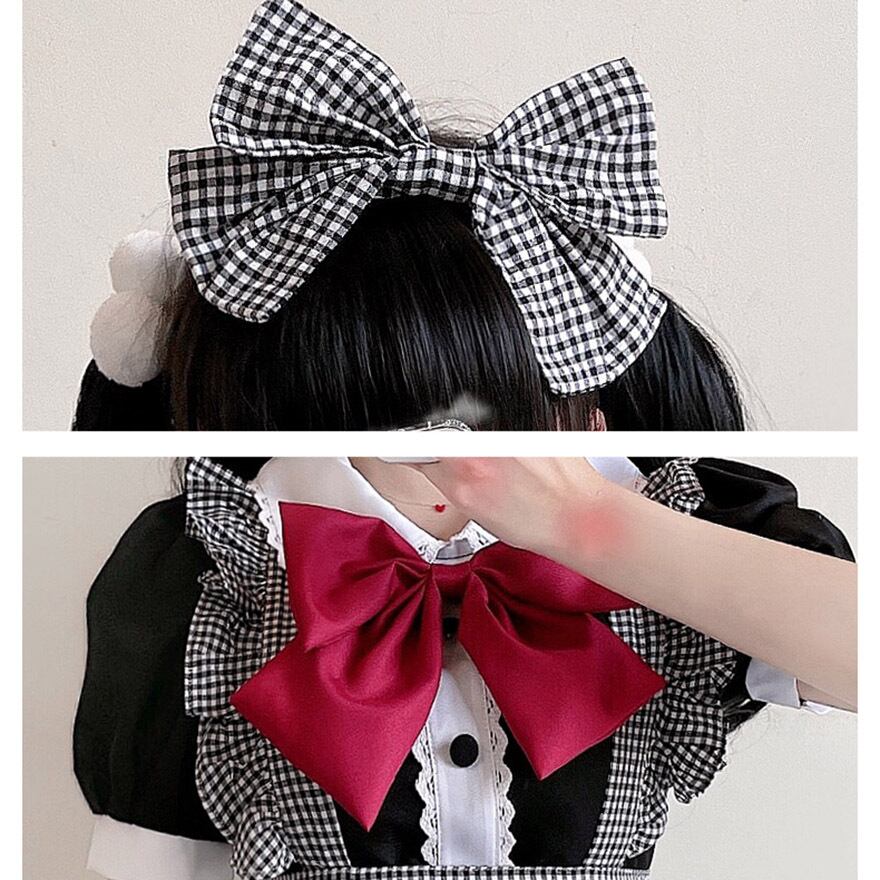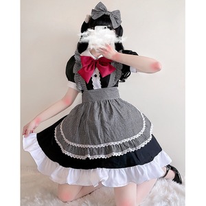 ワンピース+エプロン+ヘッドリボン+胸元リボンの4点セットです。