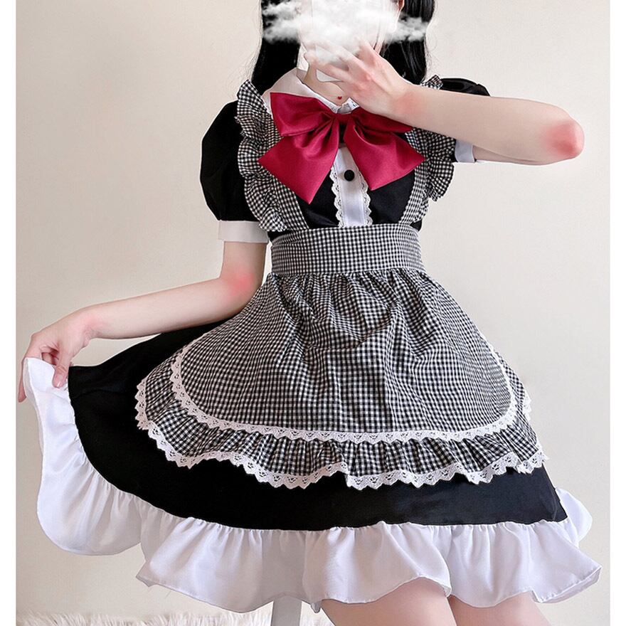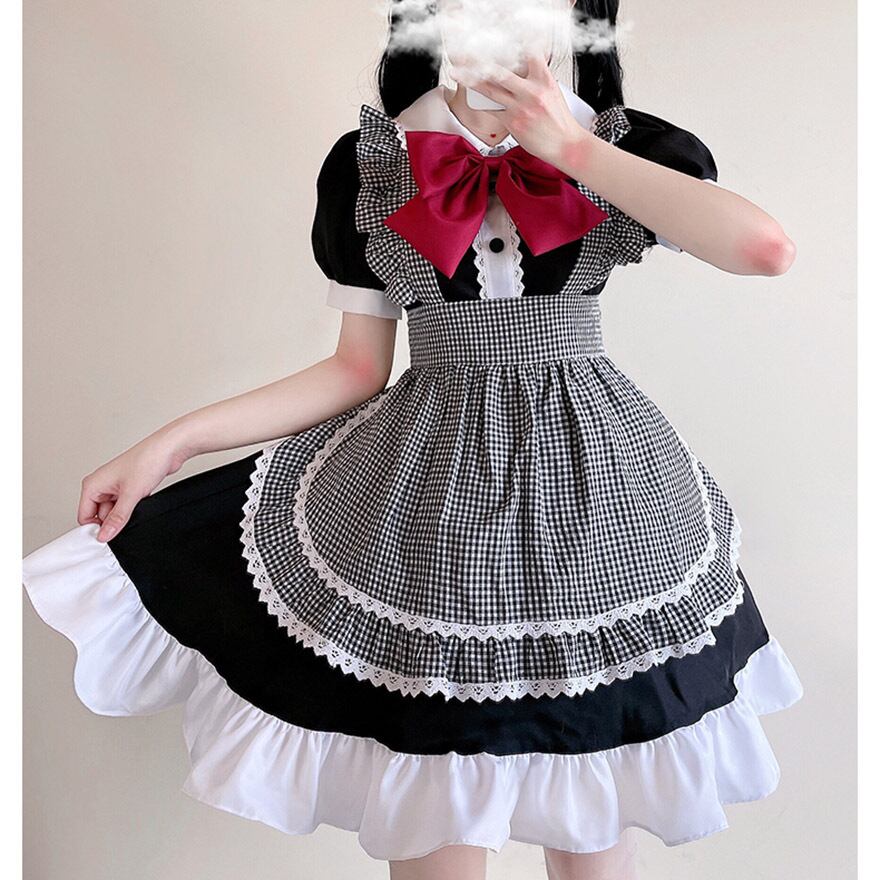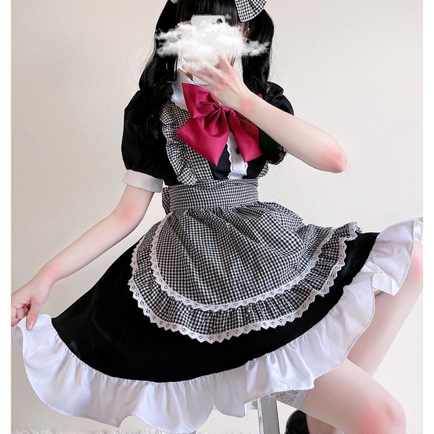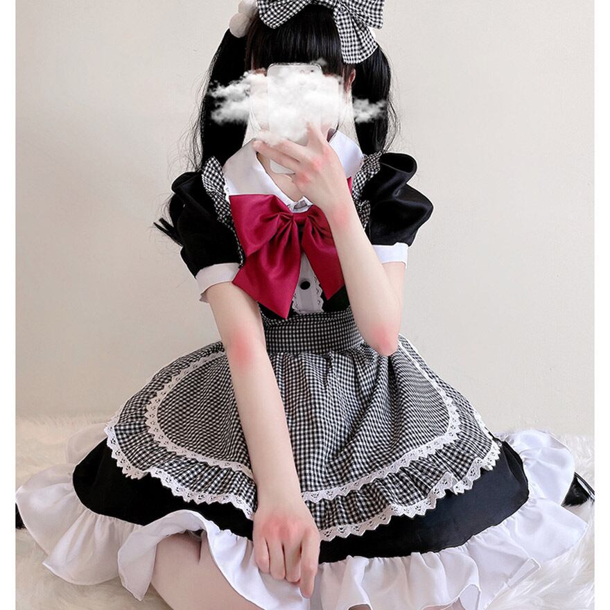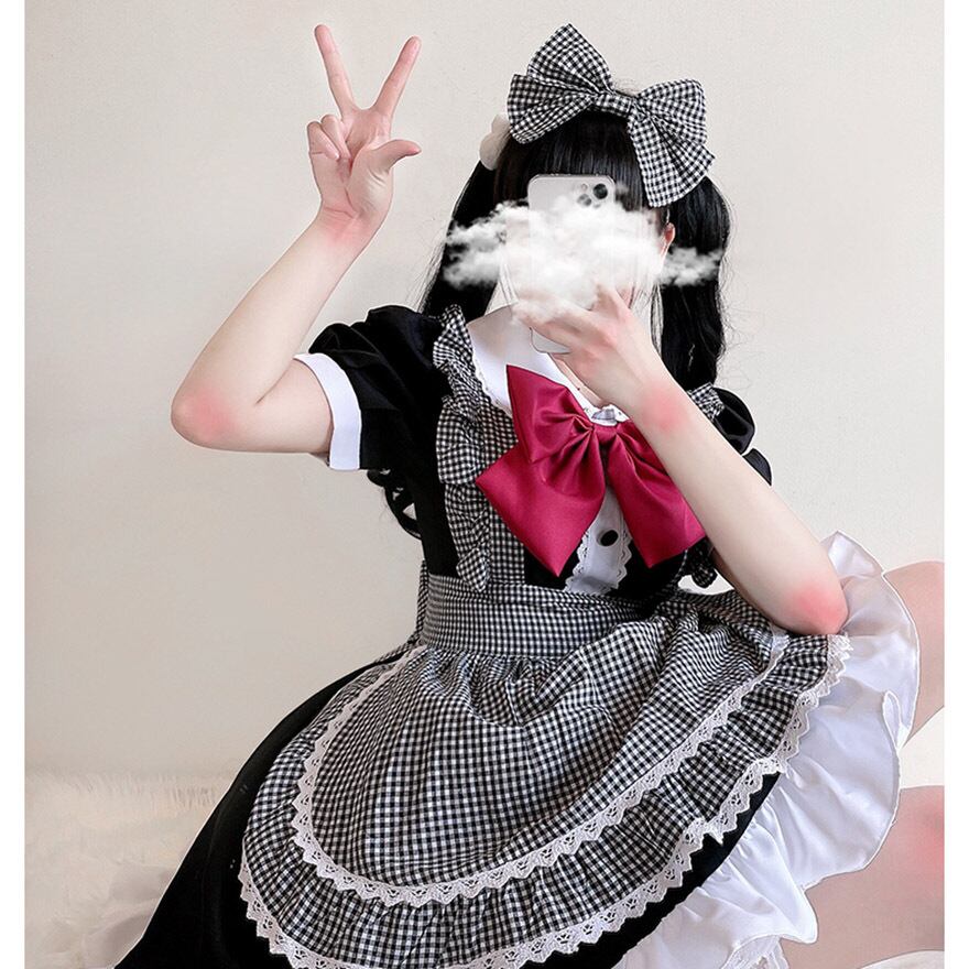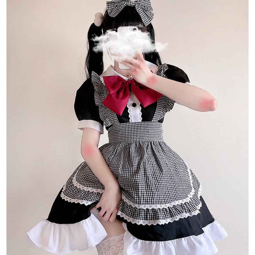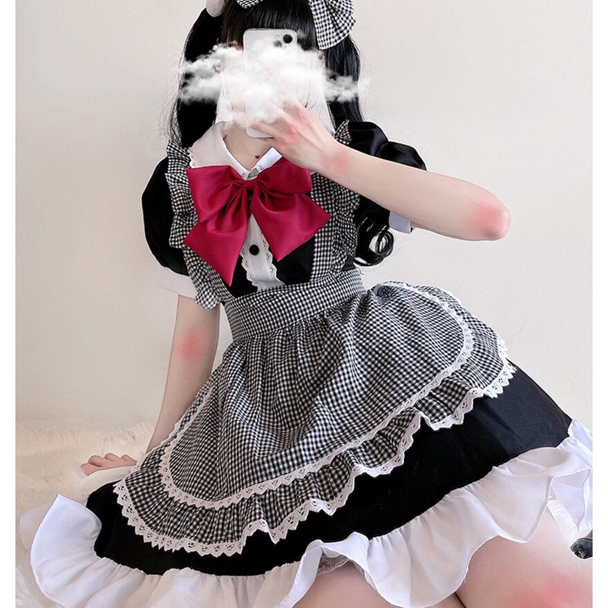 サブカル 服 地雷系 通販 メイド服 ギンガムチェック柄 ウェイトレス ミニスカート ワンピース リボン ベビードール ロリィタ服サブカルファッション