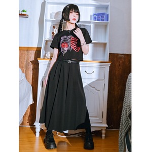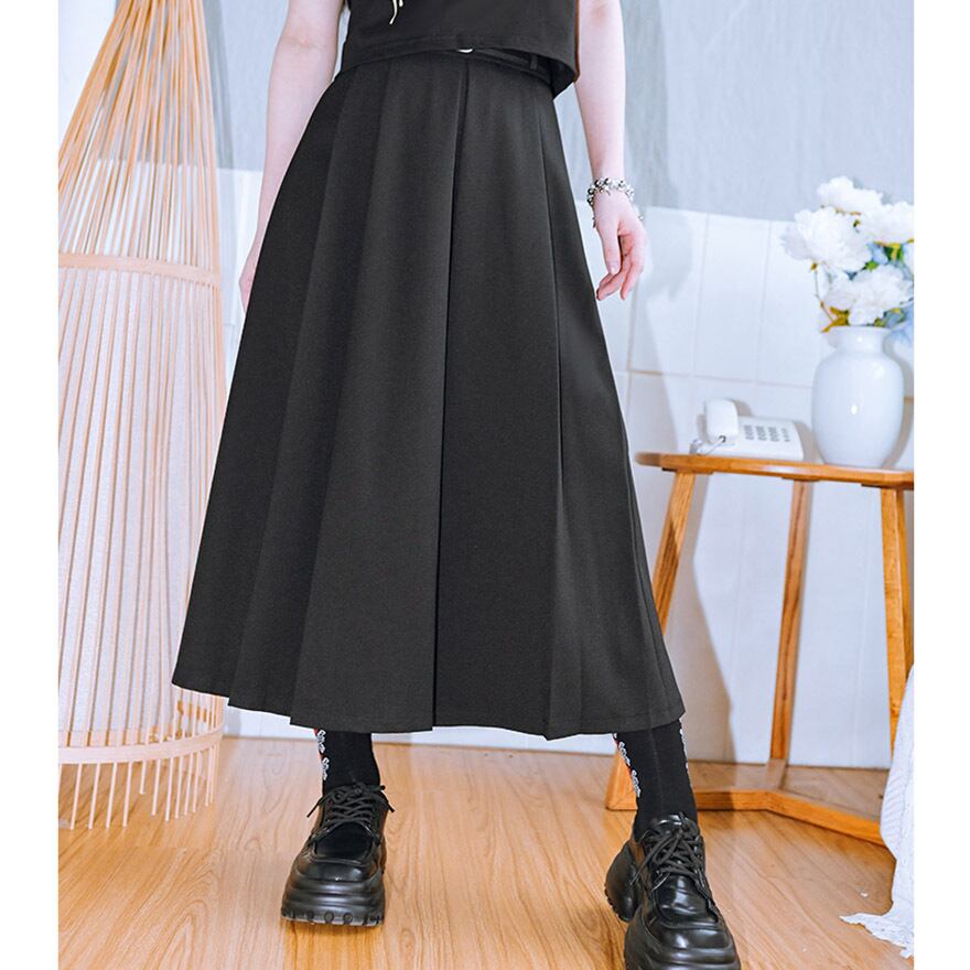 サブカル 服 地雷系 通販 チャイナ風服 チャイナ風服 古怪舎 スカート Aライン ロング丈 プリーツ ハイウエスト ベルト付き 闇かわいい