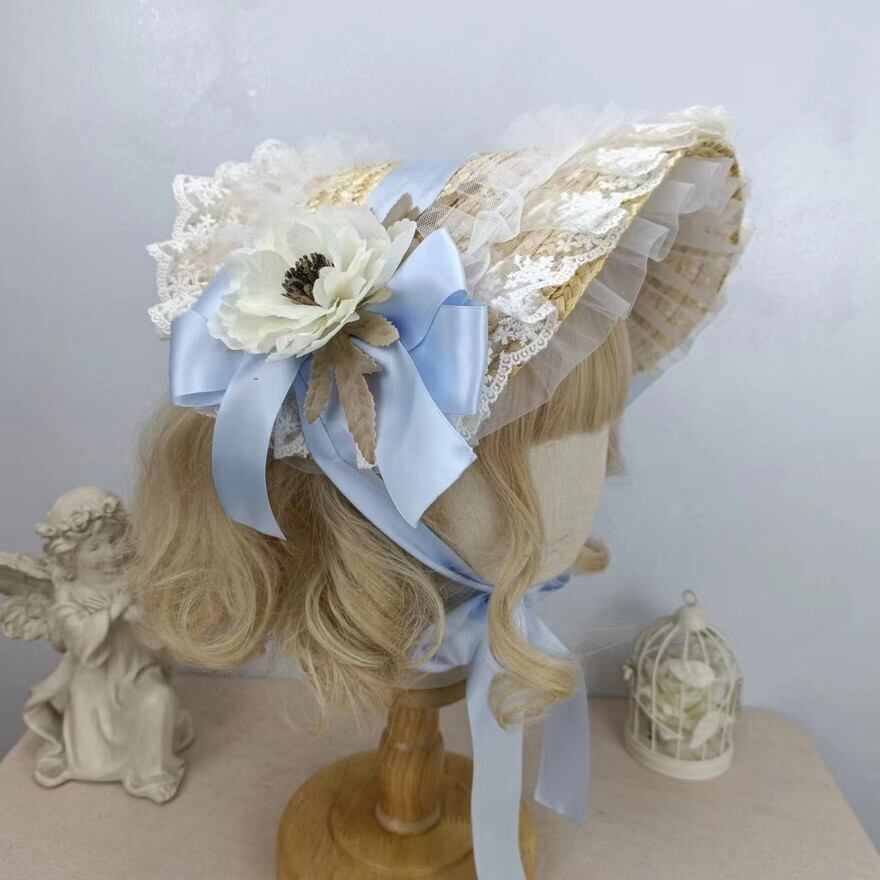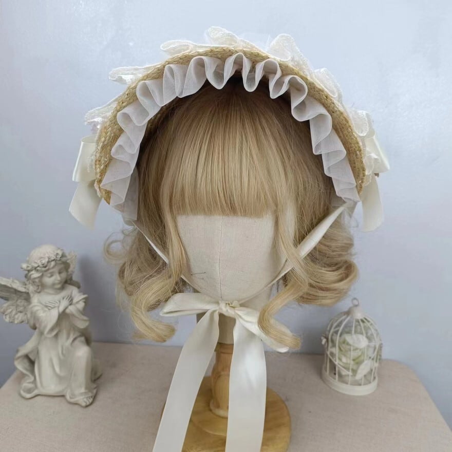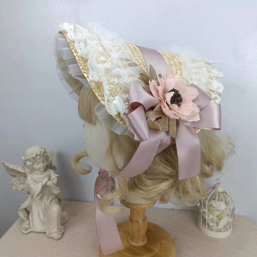 サブカル 服 地雷系 通販 ボンネット 麦わら帽 フリル レトロ クラシカル ロリータ エレガント 上品