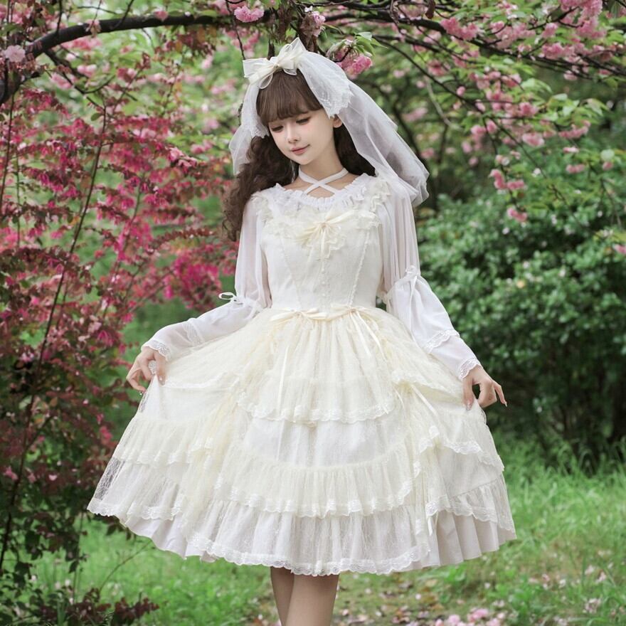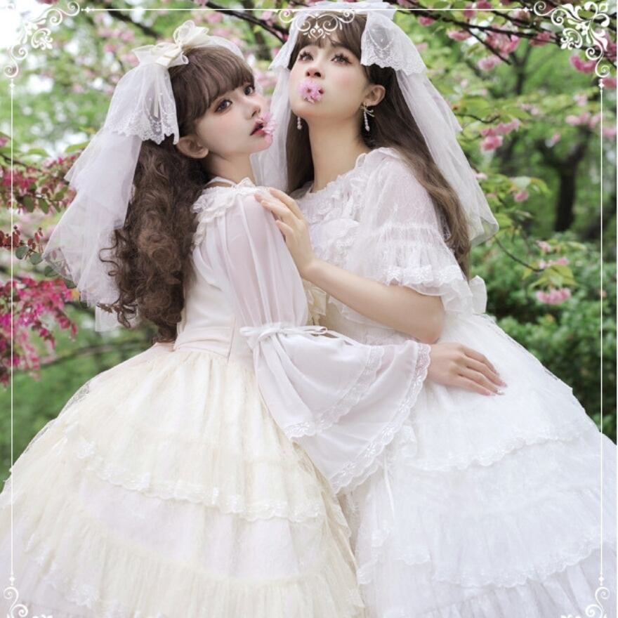 サブカル 服 地雷系 通販 ジャンパースカートゆめかわ ウエディング ドレス ホワイトロリータ 浪漫チィック ロリィタコーデ