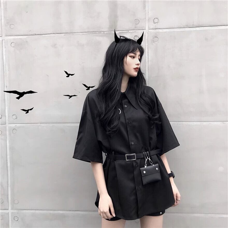 サブカル 服 地雷系 通販 半袖 シャツ ポシェットベルト付き 闇かわいい