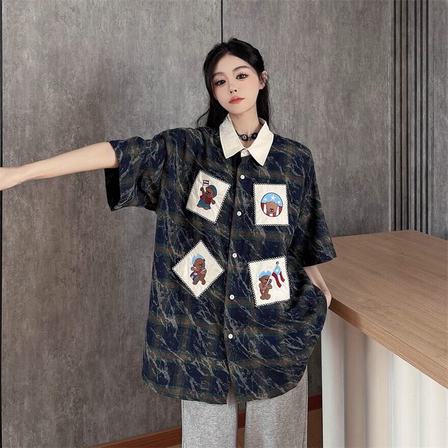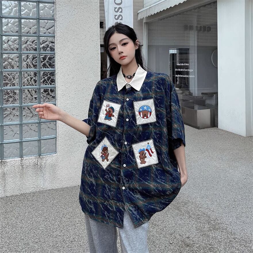 くまちゃんのアップリケが可愛い半袖シャツです。