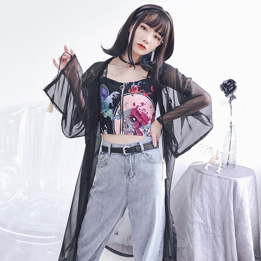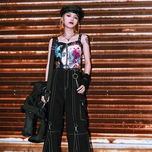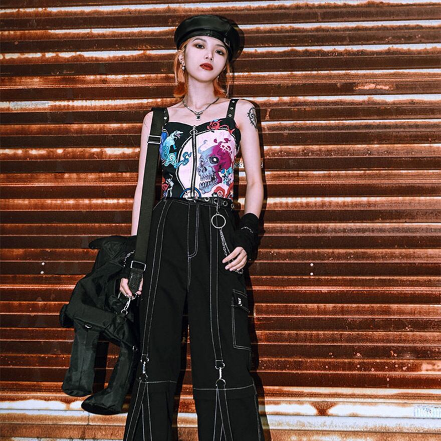 サブカル 服 地雷系 通販 チャイナ風服 チャイナ風服 古怪舎 Tシャツ ジッパー ZIP ベルトストラップ ショート丈 闇かわいい