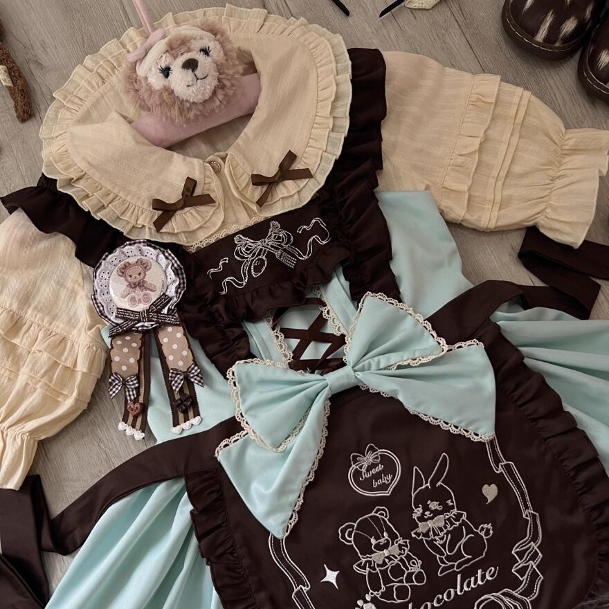 写真のジャンパースカートのオプションの半袖ブラウスです