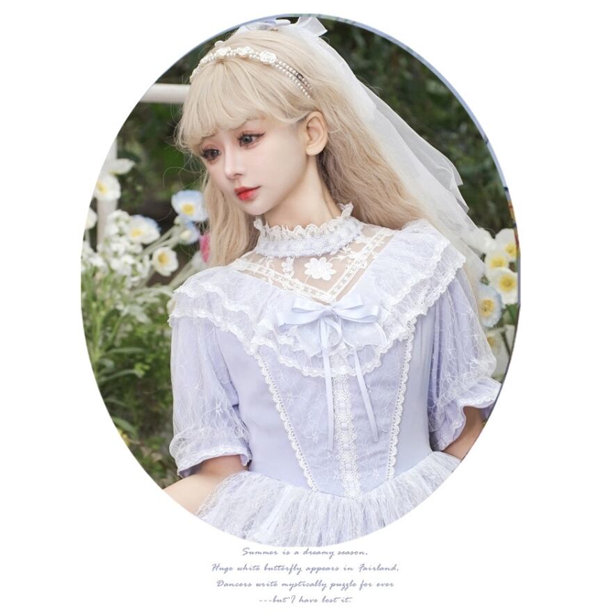サブカル 服 地雷系 通販 半袖 ワンピース レース ネックギャザー クラロリ アイリス ゆめかわ
