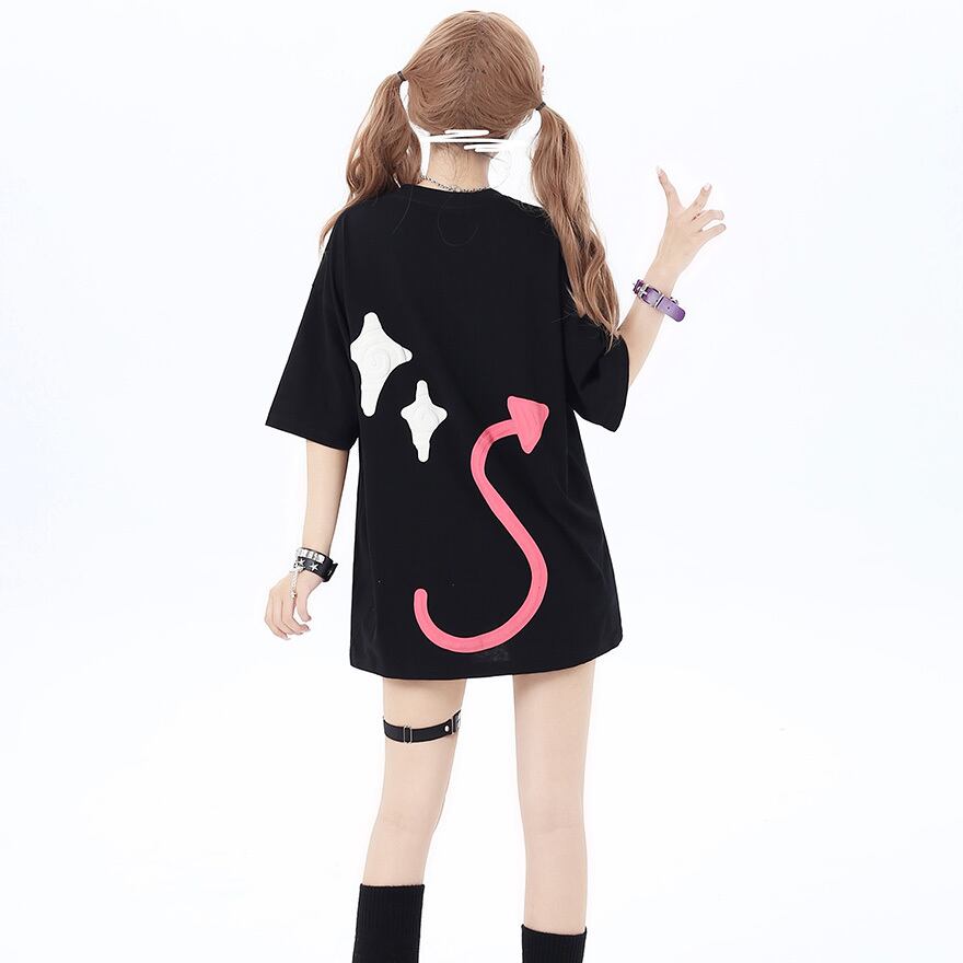 サブカル 服 地雷系 通販 半袖Tシャツ オーバーサイズ ゆったり 骸骨イラスト 手書き風プリント 闇かわいい ストリート系イラスト 漫画プリント