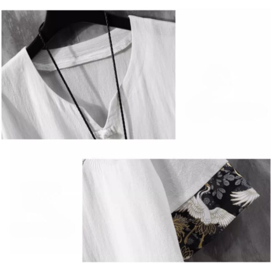 チャイナ風 鶴 刺繍 V ネック半袖 Tシャツメンズです。